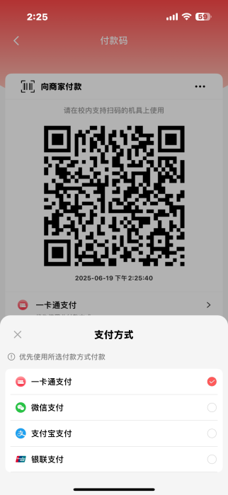 1、付款码支持一卡通、微信等支付方式;初次使用需要进行激活验证;后续直接打开“易校园APP付款码”刷码扣费,刷码时根据实际情况选择想要的支付方式扣款即可。