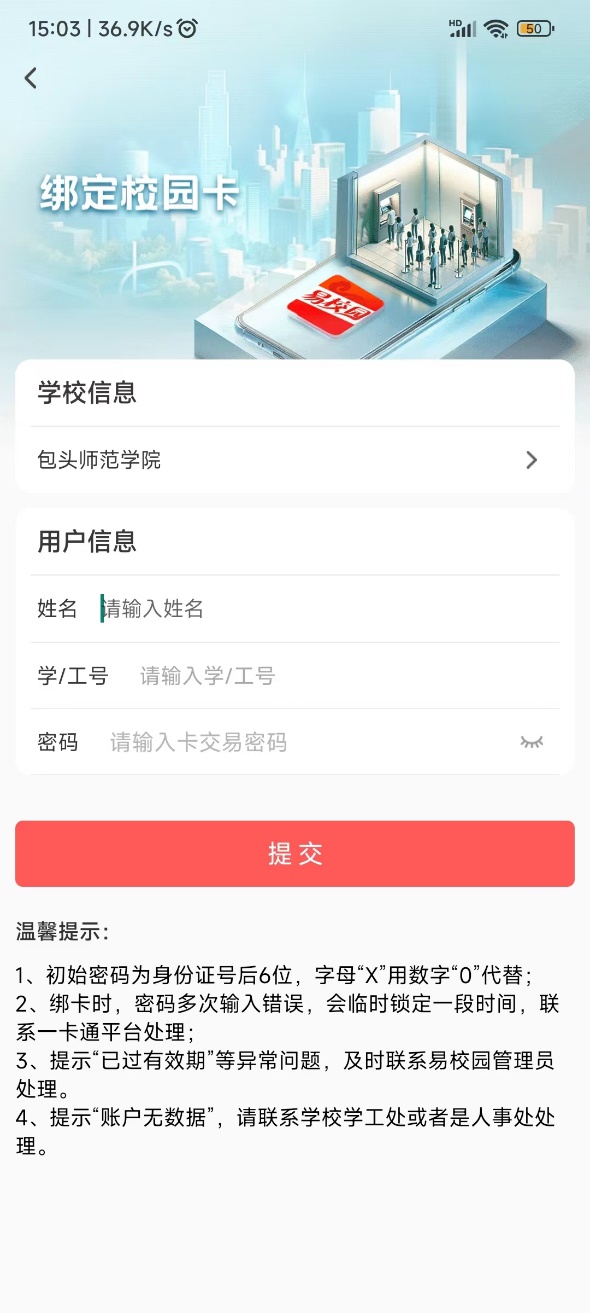 我校一卡通系统涉及校门口、图书馆、公寓通道门禁出入管理和食堂消费等场景身份核验和支付功能使用。为方便广大师生在校生活,需要同学们下载“易校园”APP,并绑定一卡通账户进行相关操作。